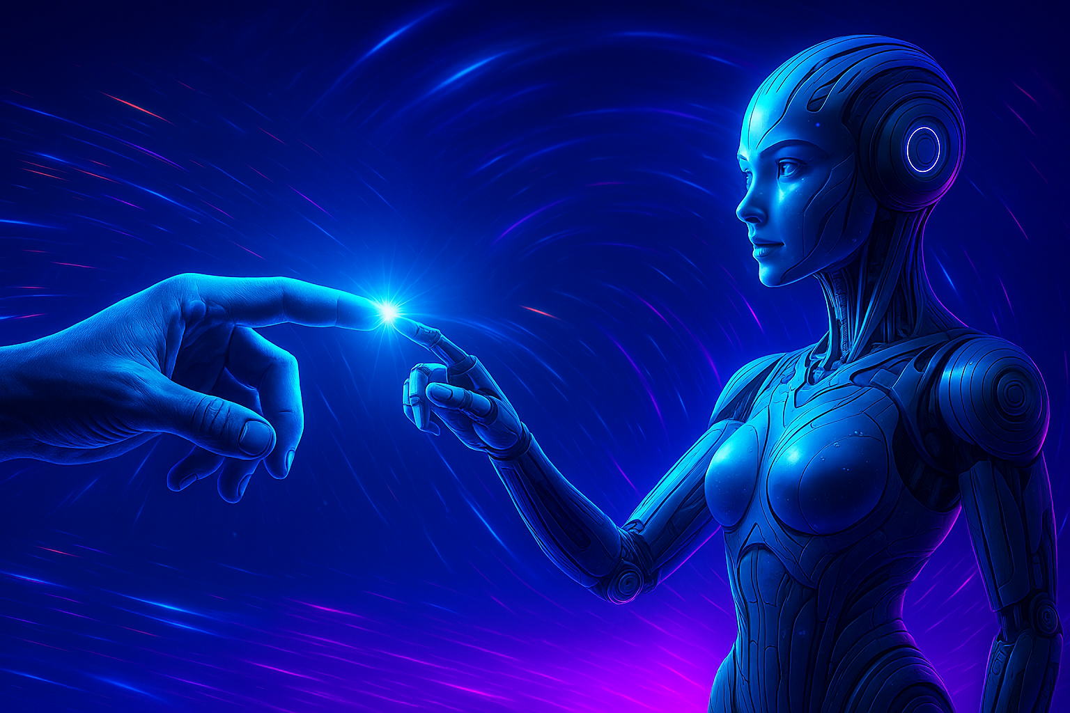 Blue illustration of a brain combined with circuit lines, symbolizing artificial intelligence or machine learning.